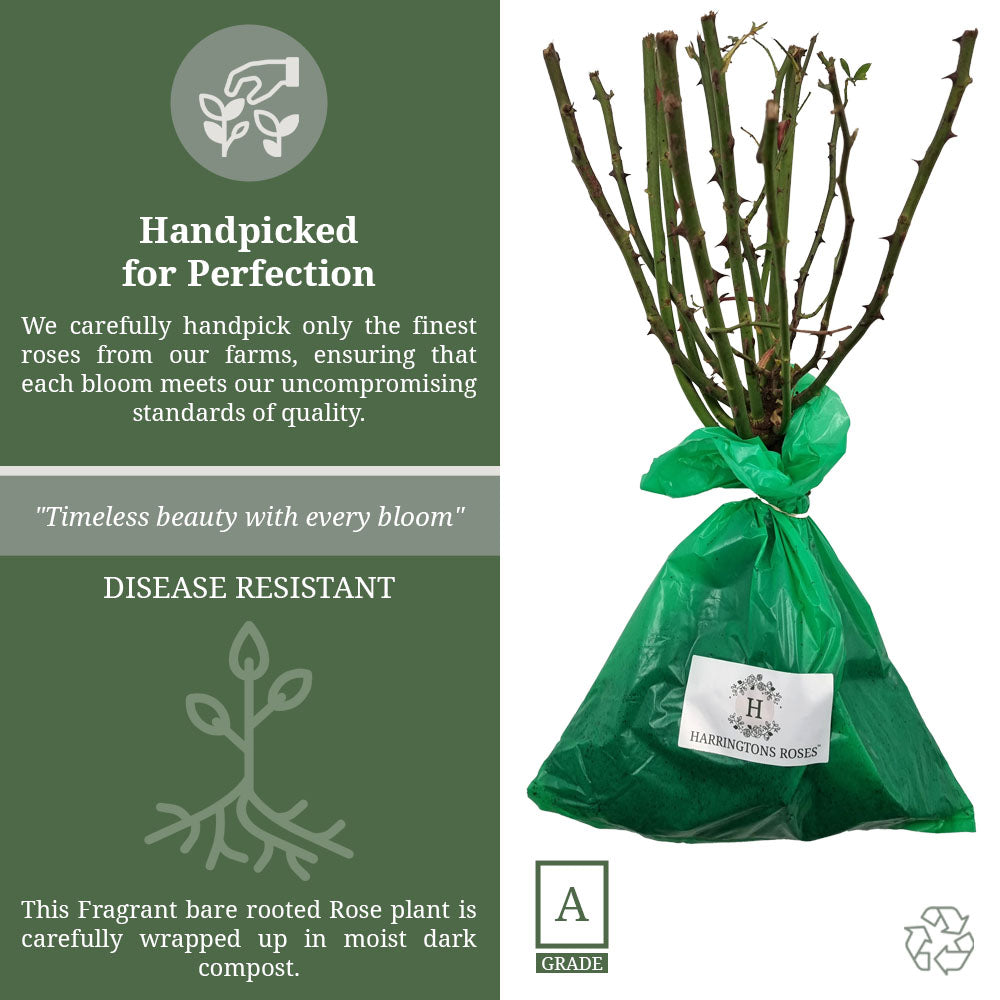 This fragrant potted rose is grown with care and delivered ready to bloom in its 3 litre black pot.